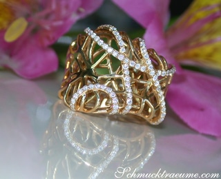 This ring fascinates by elaborate details and stately dimensions: Its clear lines and striking design lend this brilliant ring extravagant chic.