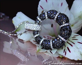 46 black diamonds and 108 white diamonds shine in this gorgeous pendant. Thanks to its unique design, this piece of jewellery is also guaranteed to catch the eye.