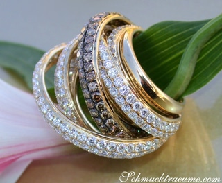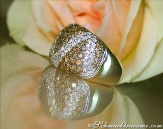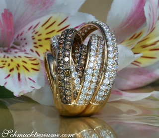 Opulent dimensions and exquisite natural brown diamonds unite in this huge dome ring to an eye-catcher for women who prefer the extraordinary.