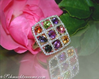 An extremely attractive as well as unusual piece of jewelry we present you with these multicolor gemstone earrings with diamonds. Beautiful to look at, truly a firework of colours and at the same time, due to its design, a piece of jewellery that won't be seen at every corner.