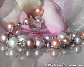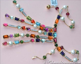 Edles Multicolor-Zuchtperlen- Brillanten Collier