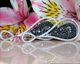 We present extravagance in top quality with this exquisite necklace.An attractive as well as unconventional piece of jewellery, set with deep black shimmering diamonds and sparkling white diamonds, simple but still an eye-catcher in a class of its own due to its size and the high quality workmanship.