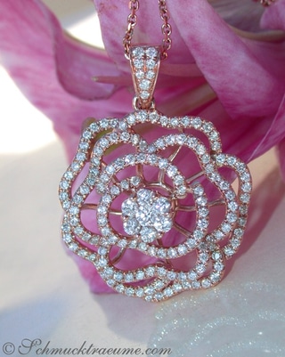 Stately dimensions, contrasting sparkle, exciting chic - these are the attributes of this magnificent ring with black and white diamonds in rose design. A unique jewel of our goldsmiths which will impress above all ladies who have a preference for opulent eye-catchers.