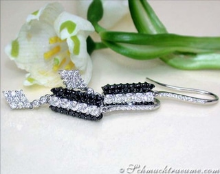 Meisterhafte Raffinesse trifft auf femininen Charme - dieser ungewöhnliche Anhänger mit schwarzen und weißen Diamanten setzten zweifellos höchst attraktive Akzente.