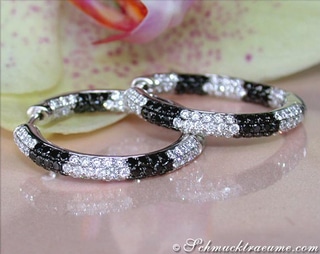 You can make an extravagant statement with these stately black diamond hoop earrings which are distinguished by their selected production and impressive size. An eye-catcher for ladies who have a preference for black diamonds and are looking for a piece of jewellery that can be easily combined with other Black Diamond pieces.