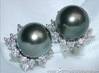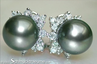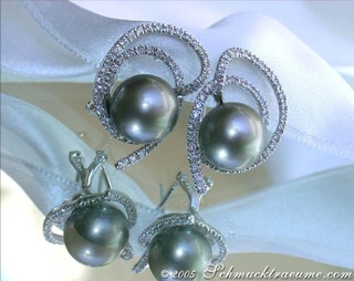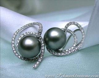 Two completely flawless Tahiti pearls, anthracite-silver shimmer are set in solid white gold versions.