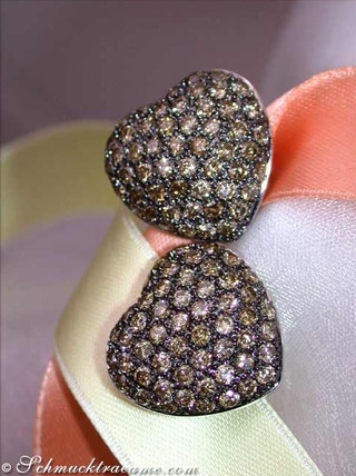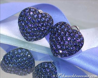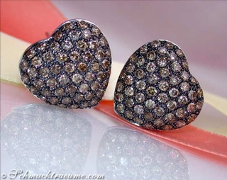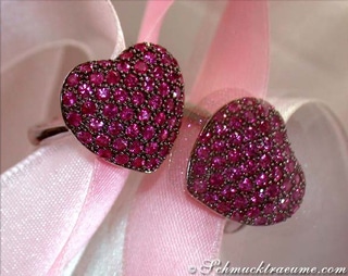 Both earrings are set with 53 pinkish-red rubies each. The earrings are solidly manufactured. Also the bulbous undersides - also beautifully designed in the heart design - are lined with white gold.