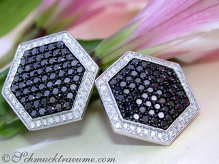 An extravagant eye-catcher: these rich earrings with black and white diamonds are made for ladies who prefer extremely stately ear jewellery.