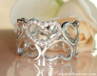 Extravagant charm and feminine chic come together in this diamond ring to create a piece of jewellery that enchants with sophisticated shapes and can be worn with both casual and elegant outfits.