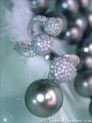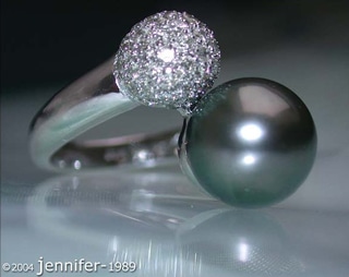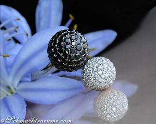 A completely flawless white South Sea pearl and sparkling diamond pave balls make this ring a piece of jewelry that catches attention straight away - from all perspectives a sensational style.