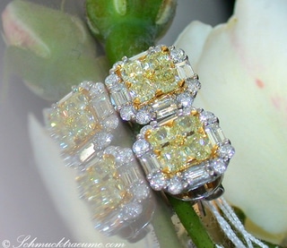 With this unique ring – set with princess cut canary yellow diamonds and white brilliant cut diamonds -, we present another high-end piece of jewelry of finest craftsmanship and diamond quality.