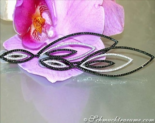 With this exceptional necklace, set with deep black shimmering diamonds and white brilliant cut diamonds, we present another top-class piece of jewellery - worked with great attention to detail and guaranteed to be a luxurious eye-catcher.