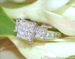 Extremely noble, truly classic in its design and, thanks to refined art deco details, certainly not commonplace - these are the attributes of this exquisite Princess Diamond Ring, which captivates with excellent manufacturing and dreamlike beautiful shapes.