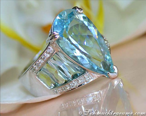 With this fantastic aquamarine ring our goldsmiths and stone setters have created a jewel of the highest quality: Exquisite colour brilliance meets elaborate manufacturing techniques. The result is a splendid ring that definitely attracts all eyes. Price upon request