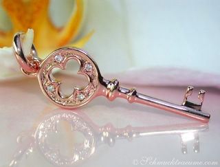 A solid rose gold key in an attractive design is attached to a fine baile. The key head is set with 24 brilliant-cut diamonds.
