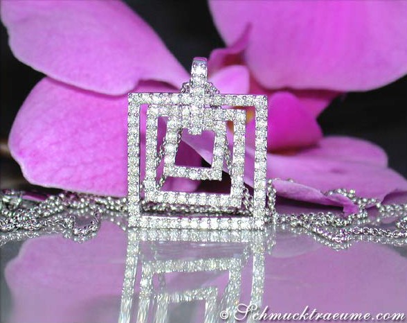 Clear lines, no-frills chic: this square diamond pendant with chain convinces above all with its unusual design.