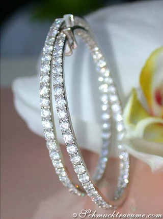 With this solid eternity ring - set with 20 immaculate princess-cut diamonds in the centre and 56 full-cut diamonds on both sides - we are once again presenting an exceptional jewel of the upper class.