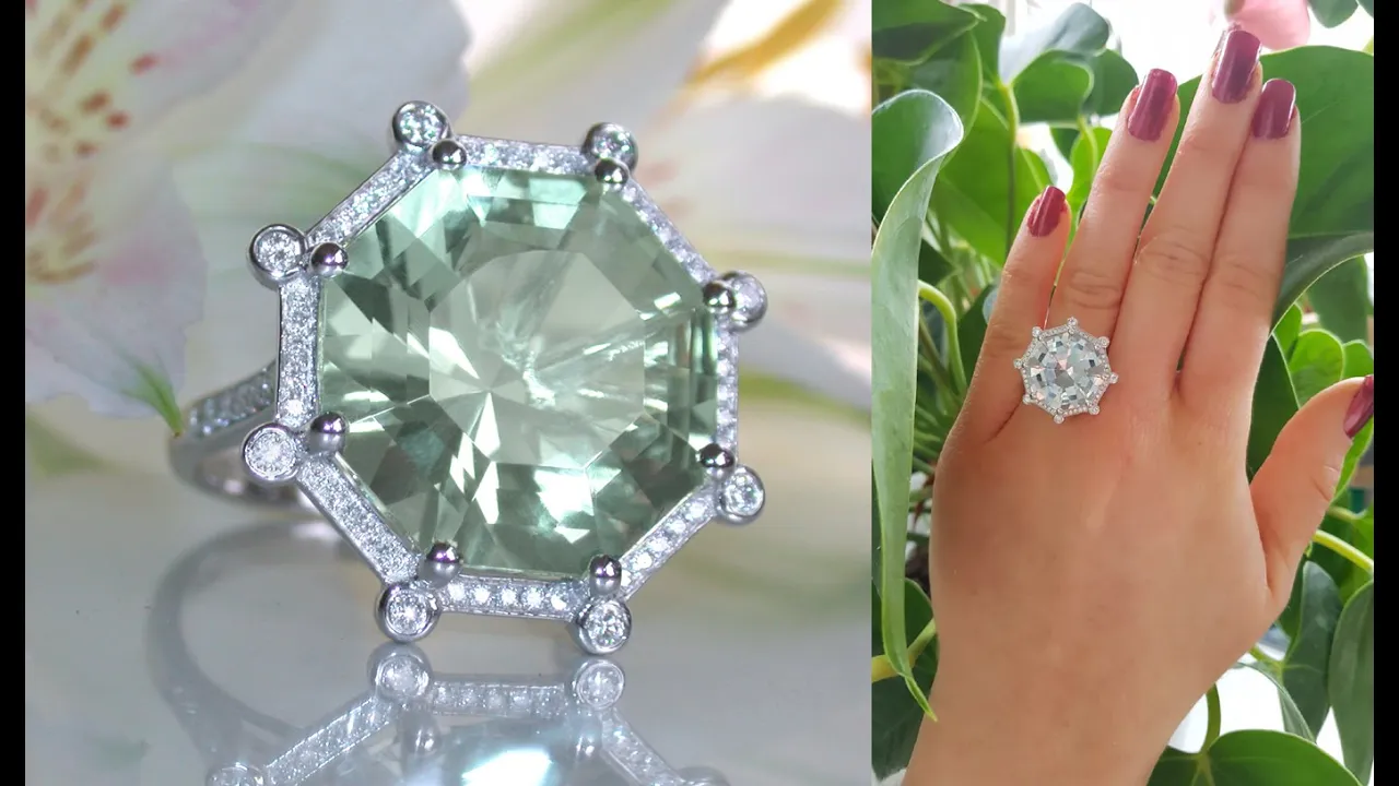 Opulent Prasiolite Ring with Diamonds