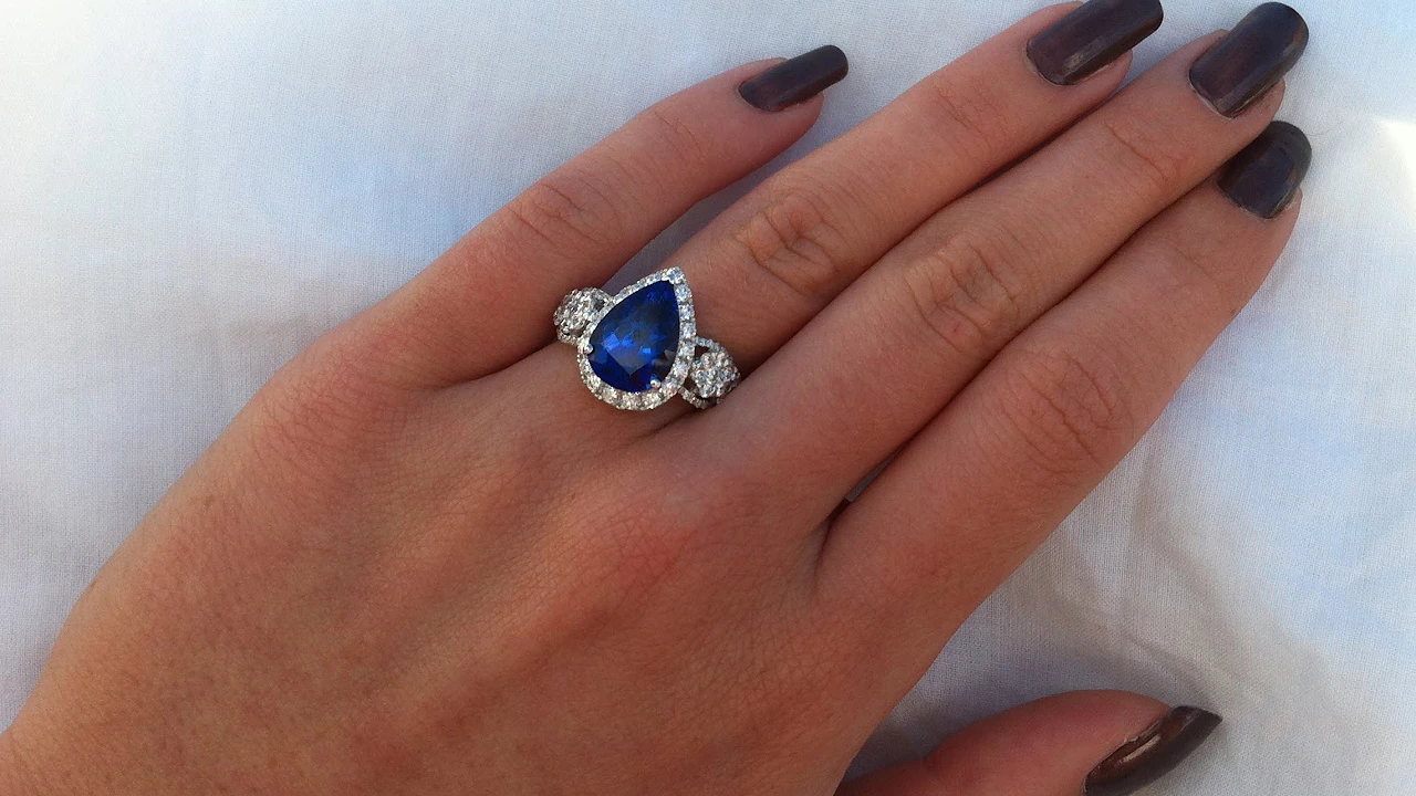 - 1 AAA Tanzanite, pear cut, deep blue color, perfect transparency: 3.97 ct.