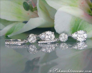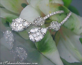 Feminine elegance meets masterly setting techniques: These exquisite teardrop earrings, elaborately crafted with diamonds in three different cuts, combine excellent craftsmanship with dreamlike shapes.