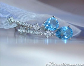Umrandet werden diese Topaze oben und unten von je fünf kleineren Diamanten. Geschlossen werden diese Ohrstecker mit einem angenehmen Clip-Bügelverschluss, die absoluten Tragekomfort garantieren.