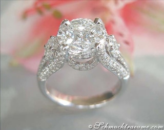 Ein wenig tiefer sind nun außen zehn feinste große VVS-Brillanten gesetzt. Auch hier handelt es sich um eine makellose Fasserarbeit, da die Oberfläche rundum absolut glatt, ebenmäßig und frei von rauen oder gar scharfen Stellen ist.