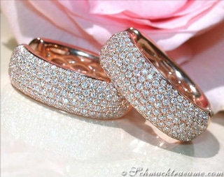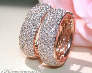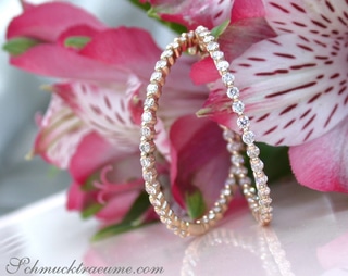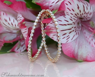 Die Creolen sind auf der gesamten Vorderseite und auch auf der inneren Rückseite mit Brillanten in Kanalfassung ausgefasst.