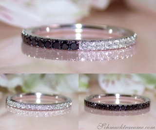 Zarter Halb Memoryring mit schwarzen & weißen Diamanten