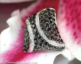 Klare Linien und opulente Linien machen diesen Ring mit naturbraunen Brillanten zu einem Schmuckstück für Damen, die ungewöhnliche Designs bevorzugen.