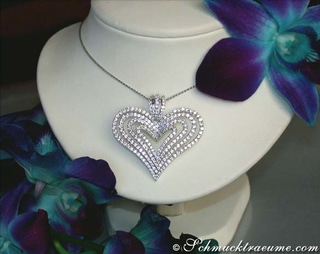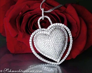 Feminine Eleganz treffen auf stattliche Maße: Dieser traumhafte Brillanten Herz Anhänger ist wie gemacht für Damen, die unübersehbare Juwelen bevorzugen und dabei besonders weibliche Designs präferieren.