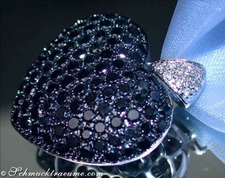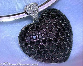 Zunächst ist die äußere Form dieses attraktiv geschwungenen Herzens mit tief-schwarz leuchtenden Diamanten ausgefasst.