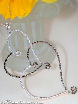 Kontrastreich, feminin und höchst attraktiv - das sind die Attribute dieses bezaubernden Herz Anhängers mit schwarzen und weißen Diamanten.