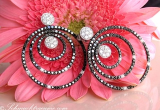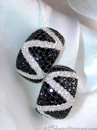 Stattlicher Chic, kontrastreiches Schimmern, klare Formen - all das zeichnet dieser auffallenden Ohrgehänge mit schwarzen und weißen Diamanten aus. Ein einzigartiges Schmuckstück, das begeistert!