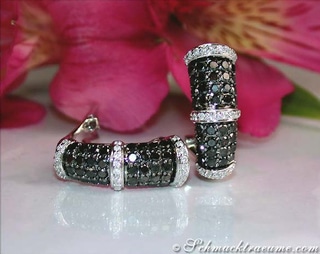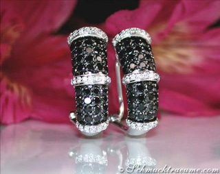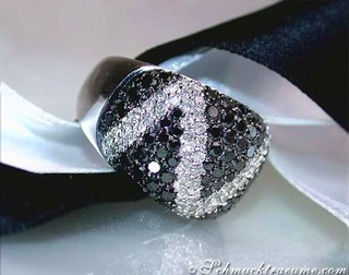 Außen und zwischen den schwarzen Brillanten sind nun - etwas erhöht - vertikale Weißgoldschienen eingearbeitet, die mit 32 weißen Brillanten ausgefasst sind.