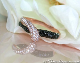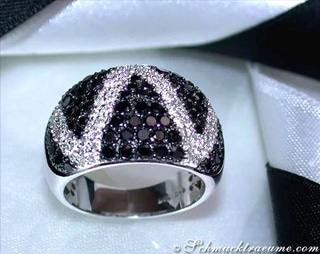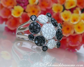 Extravagante Details und kontrastreiches Schimmern vereinen sich in diesem schwarz weiß Diamanten Ring zu einem bildschönen Schmuckstück, das stets raffinierte Akzente setzt.